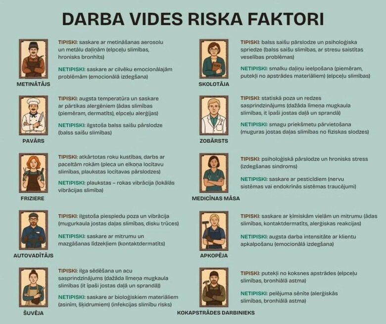 - Iesniedzot dokumentus arodārstam, nodarbinātais pievieno dokumentus par darba stāžu un APRAKSTU PAR VEICAMAJIEM DARBA PIENĀKUMIEM, kaitīgajiem darba vides faktoriem un darba apstākļiem.